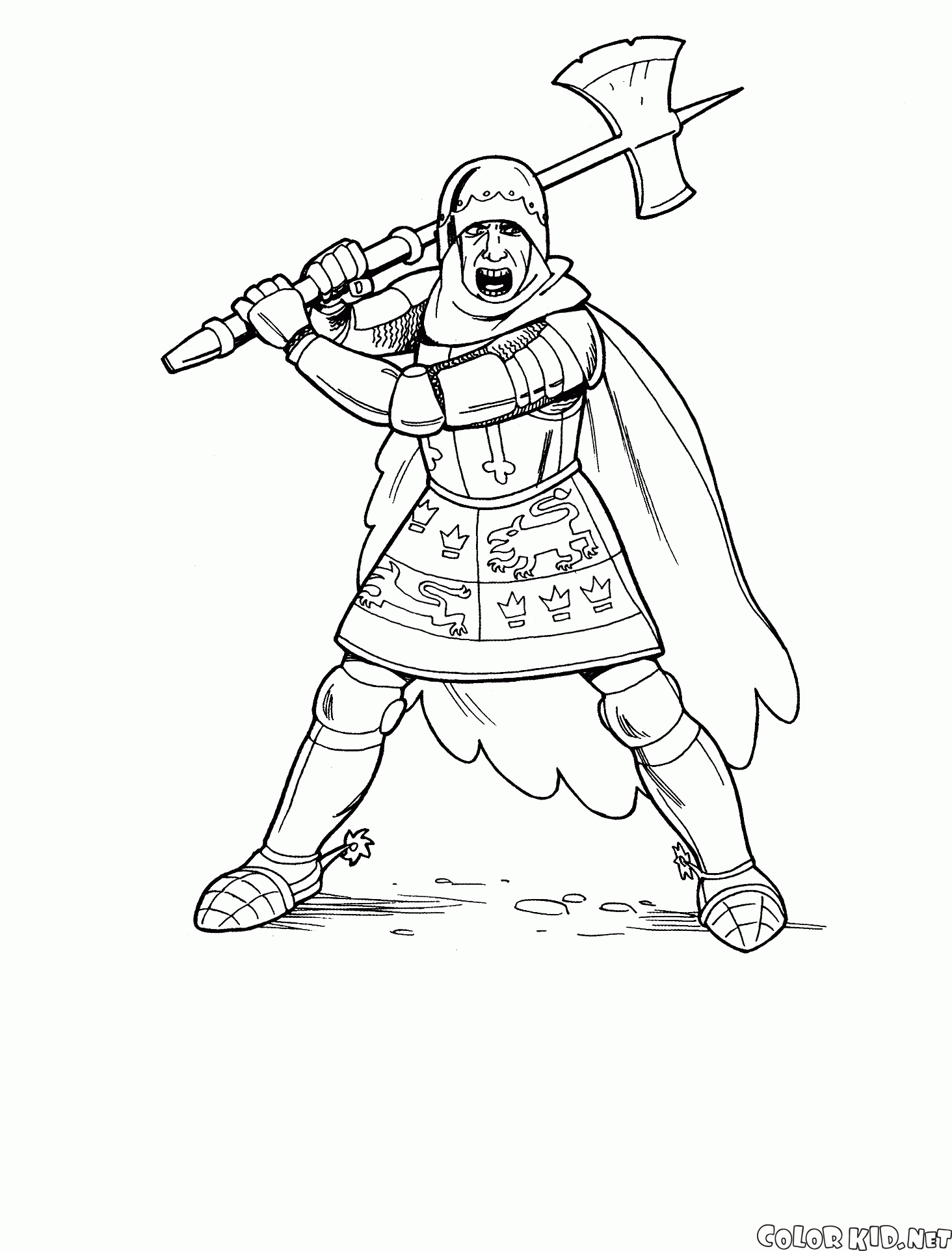 Sie können die Malvorlagen für Kinder Ritter mit Axt von unserer Webseite herunterladen.