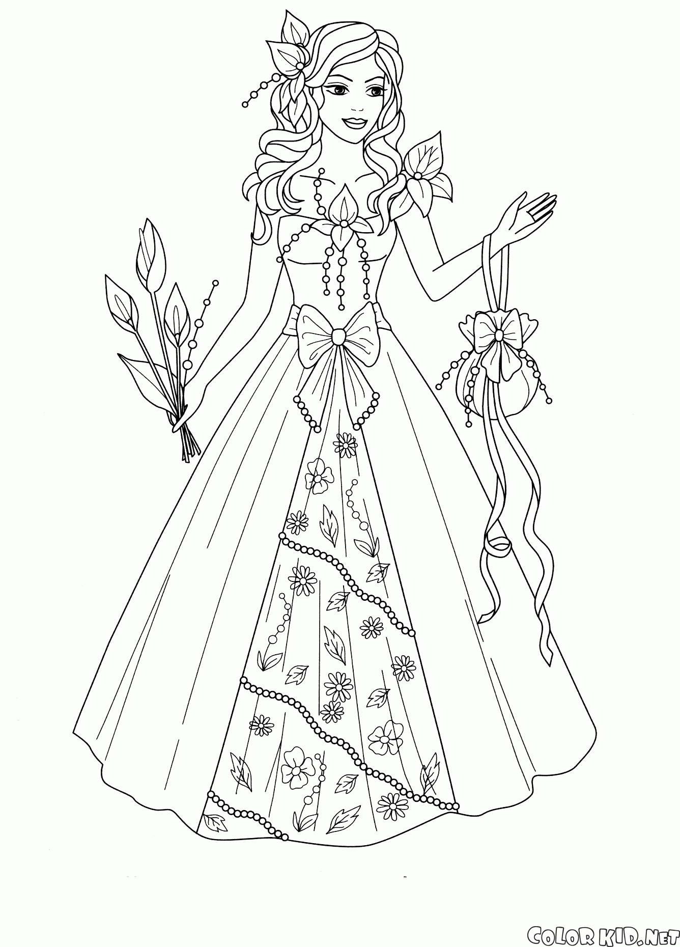 Sie können die Malvorlagen für Kinder Die Prinzessin des Königreiches von Blumen von unserer Webseite herunterladen.