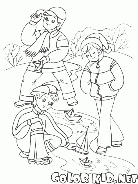 Malvorlagen - Jungen und Boote