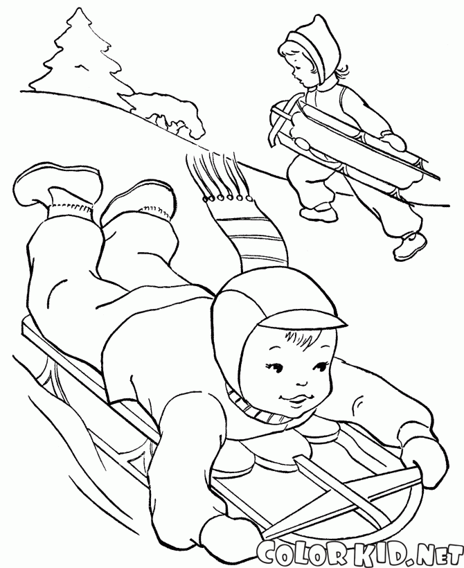 Malvorlagen - Kid Schlitteln