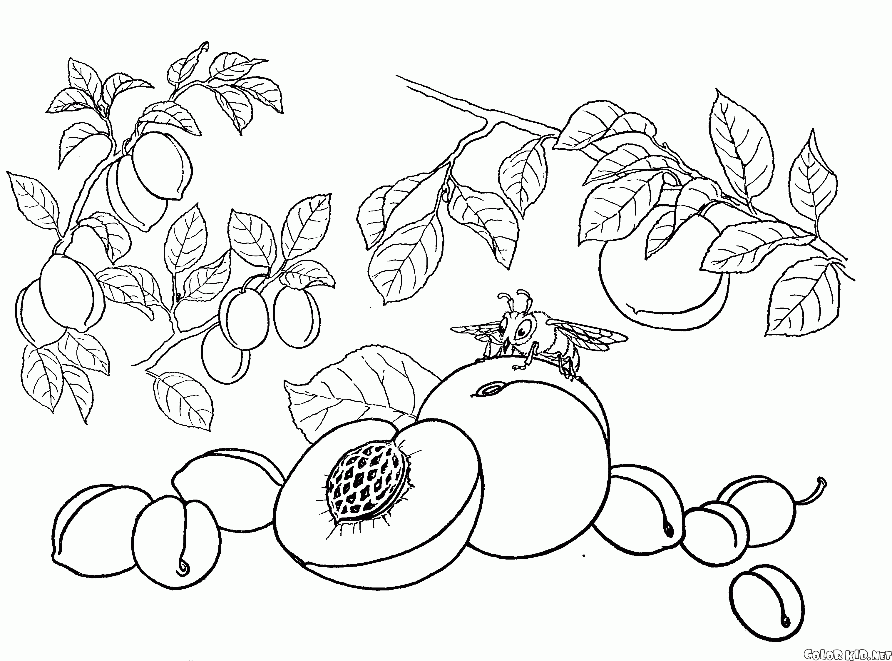 Malvorlagen - Pfirsich, Aprikose, Pflaume
