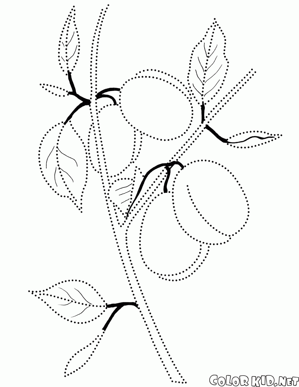 Malvorlagen - Pflaumen auf einem Ast