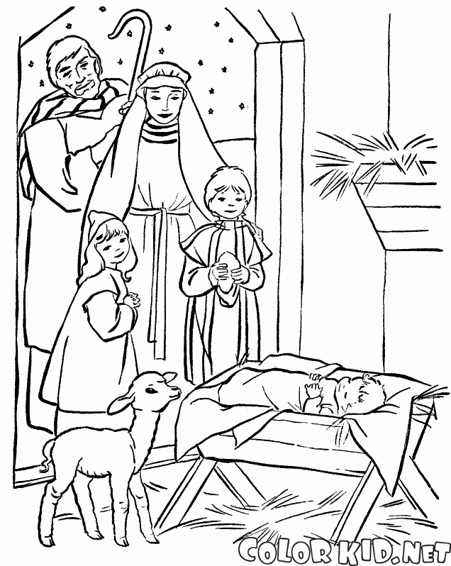 Malvorlagen - Retter in der Krippe