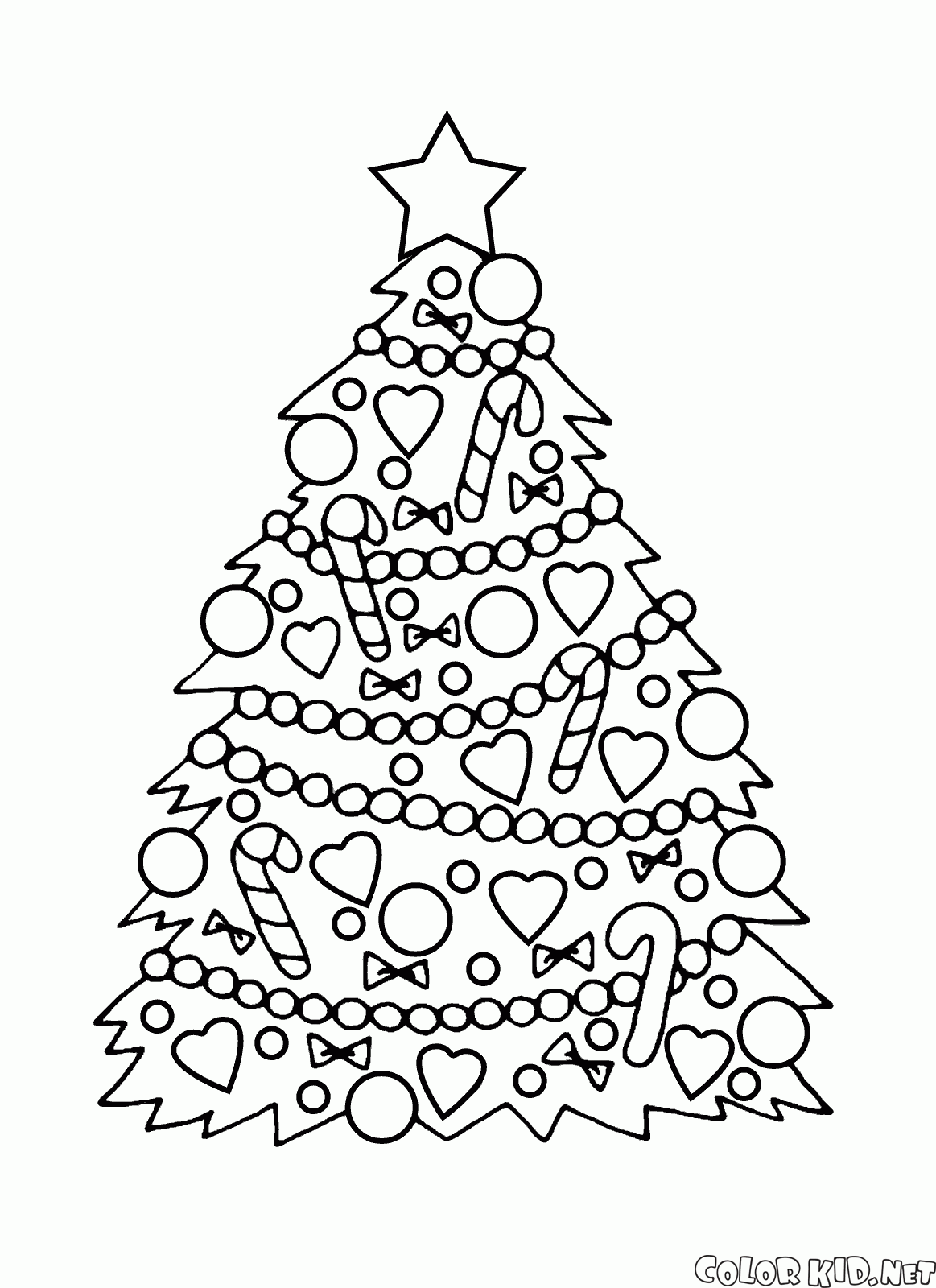 Sie können die Malvorlagen für Kinder Weihnachtsbaum mit Ornamenten von unserer Webseite herunterladen.