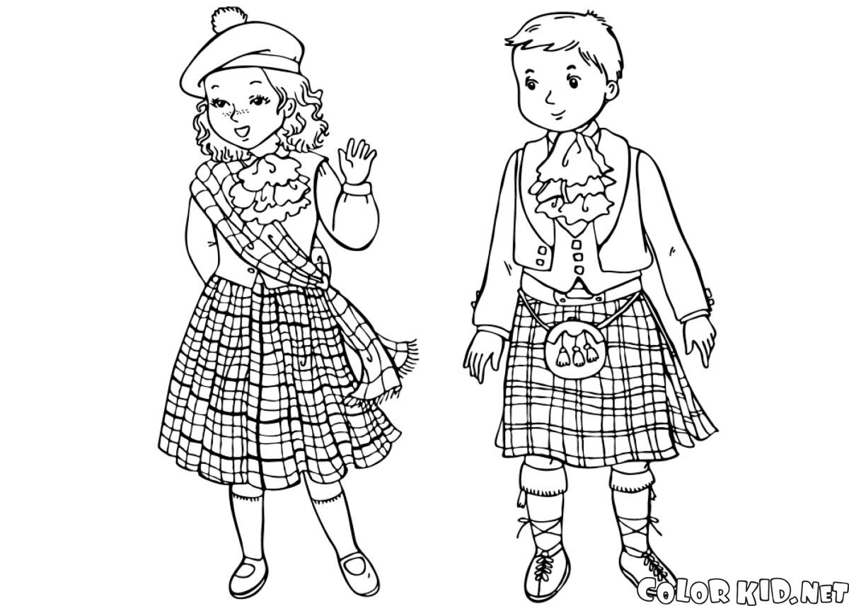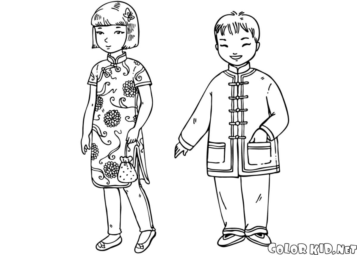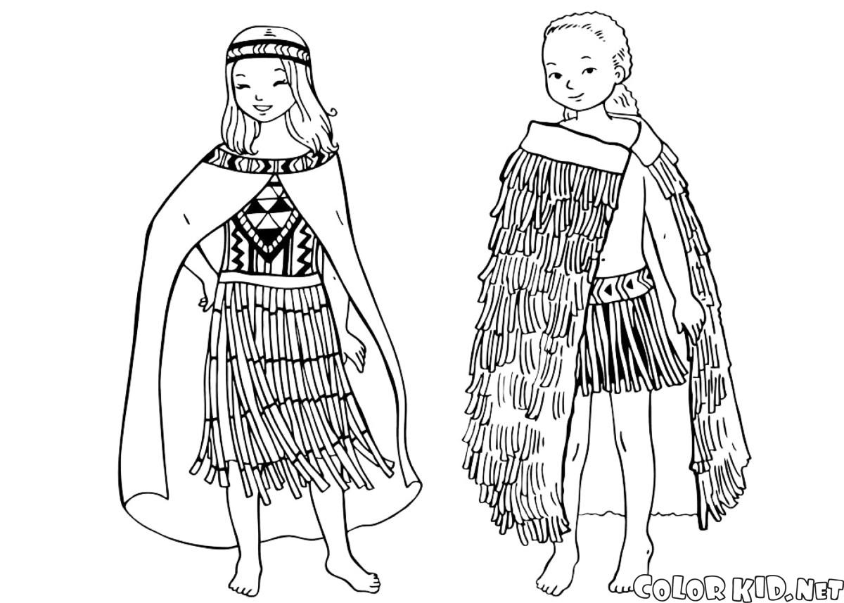 Malvorlagen - Kinder in traditioneller Kleidung