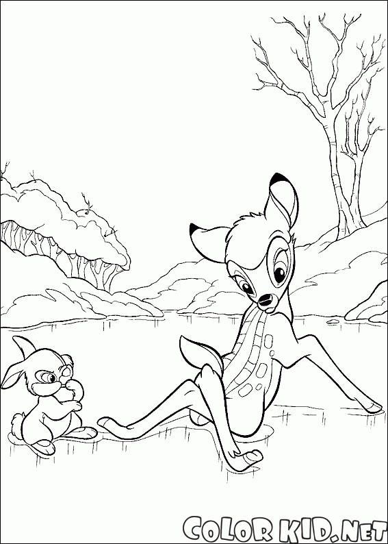 Malvorlagen - Hare and Bambi auf Eis