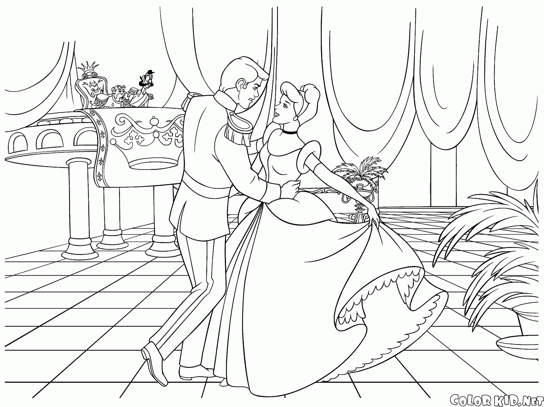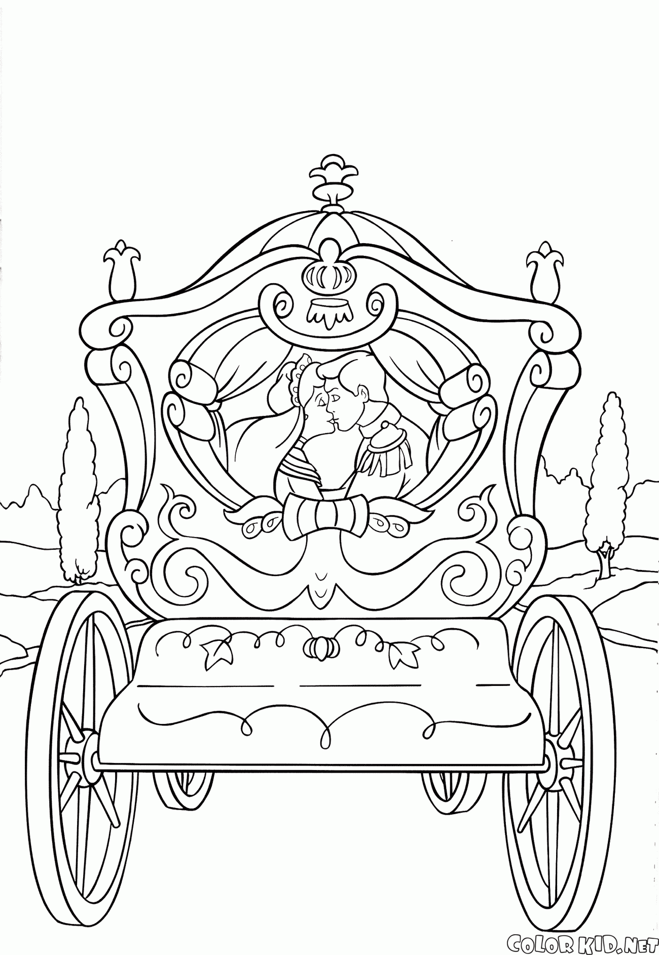 Malvorlagen - Aschenputtel und der Prinz in einem Wagen