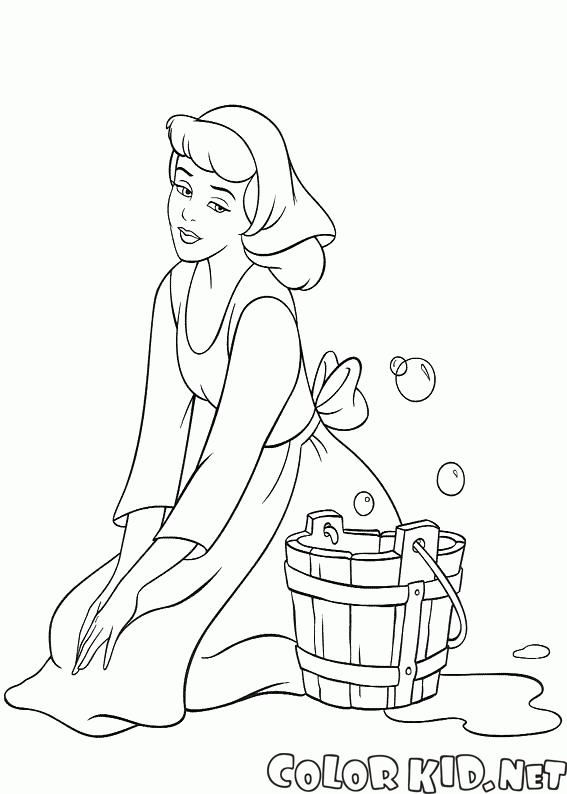 Malvorlagen - Cinderella wäscht den Boden