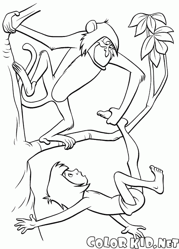 Malvorlagen - Banderlogs und Mowgli