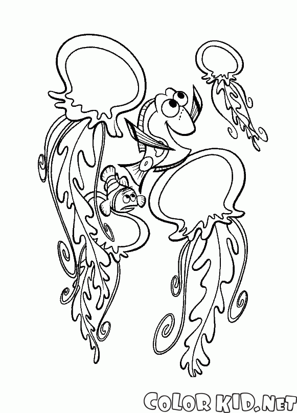 Malvorlagen - Quallen und Nemo
