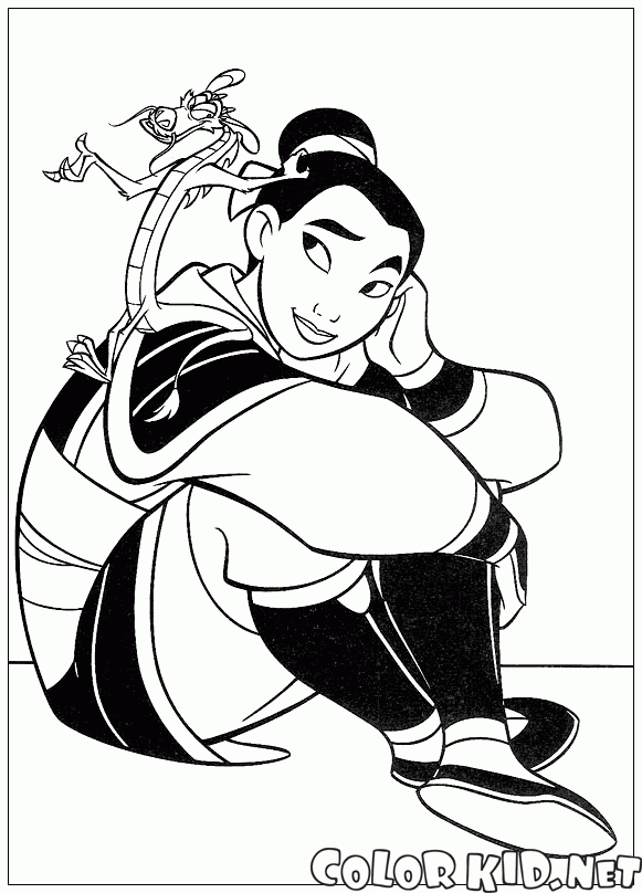Malvorlagen - Mulan Mushu und tief in Gedanken versunken