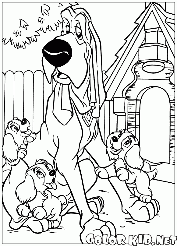 Großer Hund und Welpen